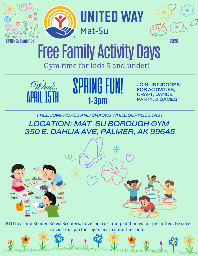 Your support matters. Every donation to United Way of Mat-Su helps us fund critical programs and initiatives that improve lives right here in the Mat-Su Valley. Join us in making a lasting impact—give today and be part of the change.